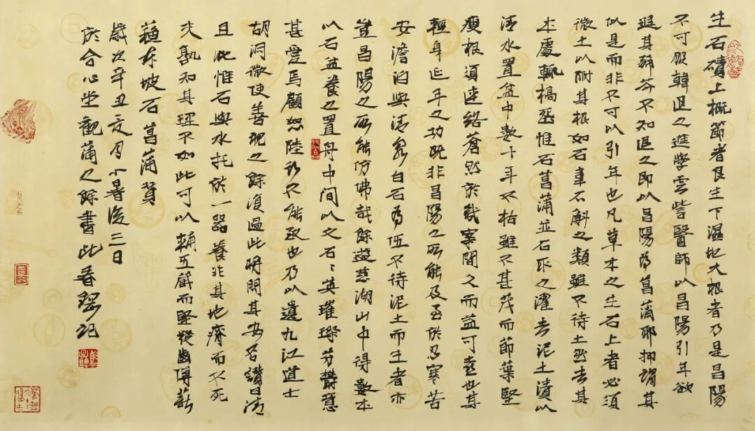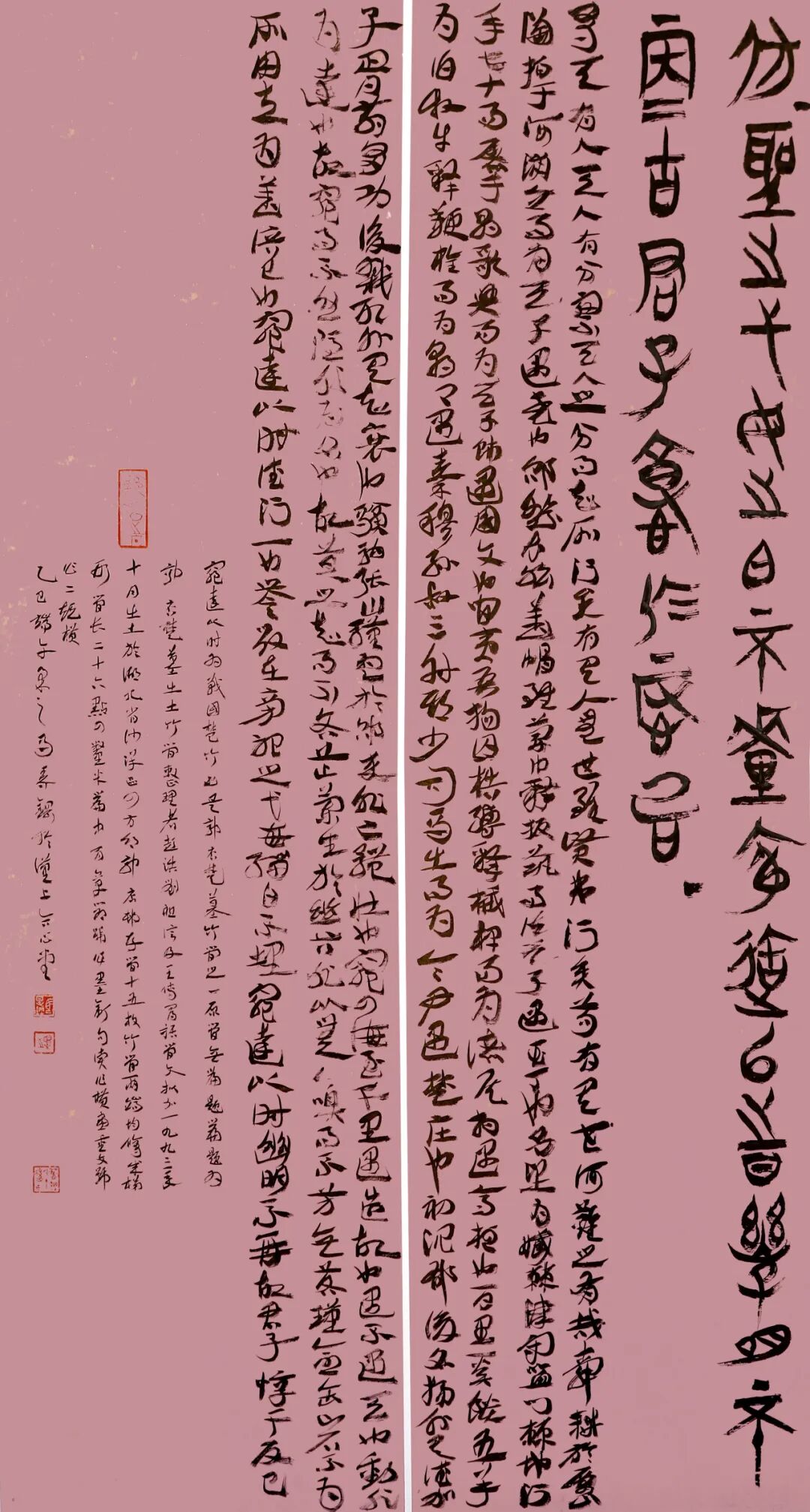 马春钢在创作中融入楚文化与老庄哲学,积极探索楚简与大篆融合新风,并将楚简元素引入篆刻,作品具有鲜明的个人风格、强烈自我表达意识。在当代书坛,马春钢是第一批研习楚简的“领跑者”,为推动楚简书法及地域书风的发展作出重要贡献。